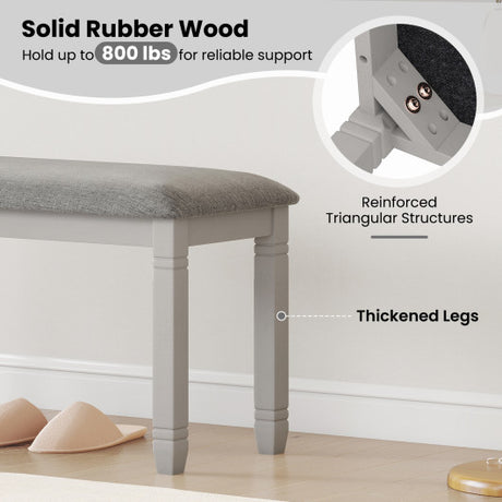 End of Bed Bench with Padded Seat and Solid Wood Legs-Gray