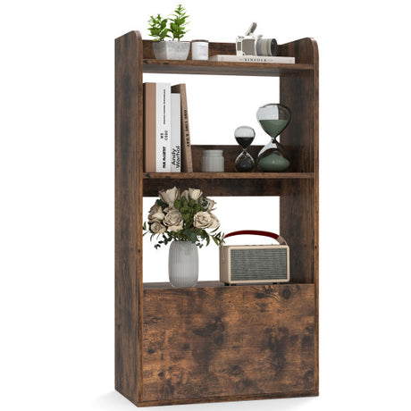 Freestanding Bookshelf with 3-Tier Open Shelf-Rustic Brown
