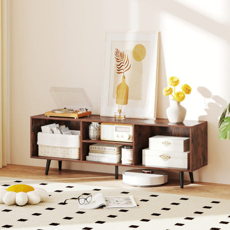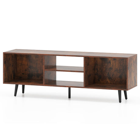 47.5 Inches TV Stand for 55-Inch TV with Compartments and Metal Legs-Rustic Brown