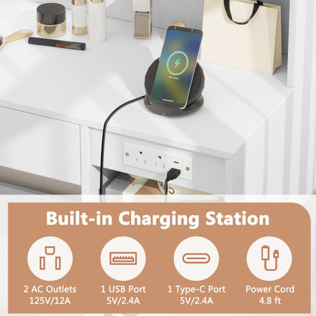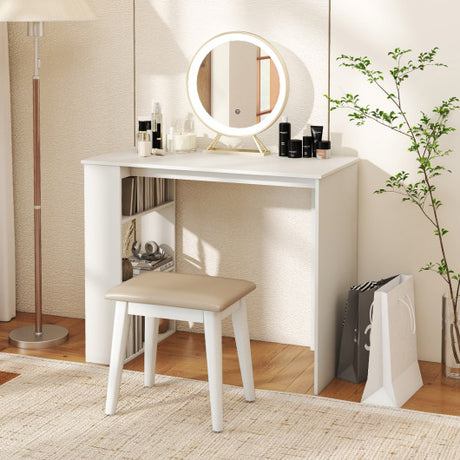 Vanity Desk with Adjustable Brightness and 3 Light Modes for Bedroom-White