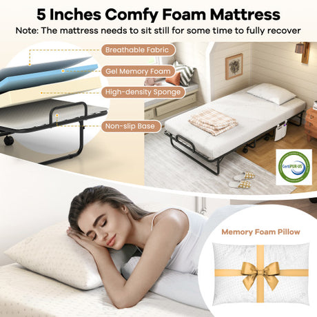 Twin Size Wooden Bed Frame with Headboard and Slat Support-Walnut