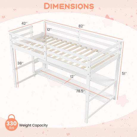 Twin Size Loft Bed with Storage Shelves Full-length Guardrails and Ladder-White