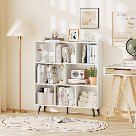 8-Cube Bookcase with 5 Tapered Metal Legs-White
