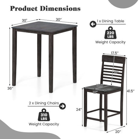 - 40% offCostway 3-Piece Counter-Height Dining Table Set for 2 with Rubber Wood Frame and Footrest-Gray Sale price $219.00 Regular price $364.00Unit price /Unavailable1 color available In stock
