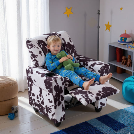 Kids Recliner Chair Push Back Toddler Reclining Armchair with Cup Holder-Brown