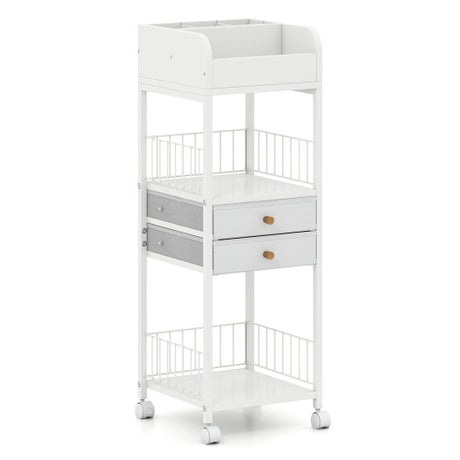 Makeup Organizer Floor Skincare Organizer Cart with Drawers and Storage Shelves-White