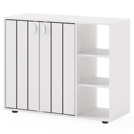 3-Tier Shoe Cabinet with Doors with Adjustable Open Shelves for Entryway-White