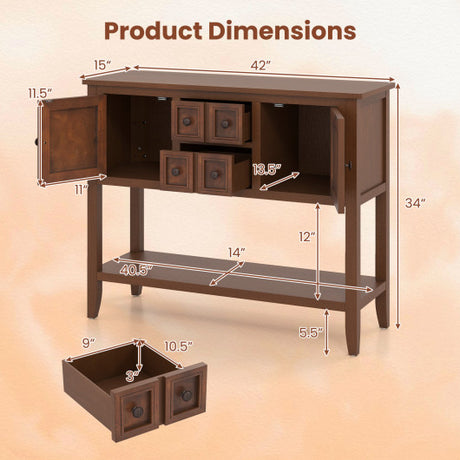 Buffet Sideboard Cabinet with 2 Doors and 2 Drawers-Brown
