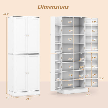 Kitchen Pantry Cabinet 65.5 Inch Freestanding Tall Buffet Cupboard-White