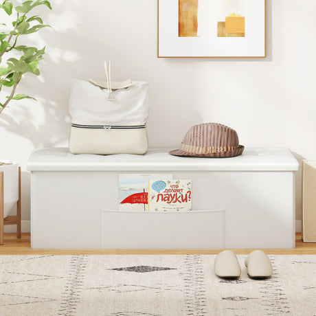 43 Inches Folding Storage Ottoman Bench Foot Rest Stool End of Bed Bench-White
