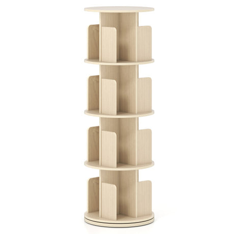 4-Tier Rotating Bookshelf 360° Display Rack with Dividers and Anti-falling Baffles-Natural