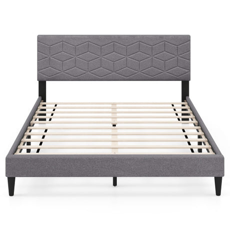 Twin/Full/Queen Size Bed Frame Modern Platform Bed with Linen Fabric Upholstered Headboard-Queen