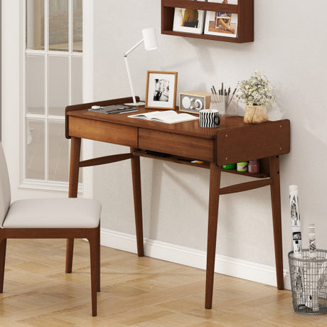 Bamboo Writing Desk with 2 Storage Drawers and Open Shelf-Walnut