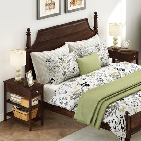 3-Tier Narrow End Table with Drawer and Storage Shelves Set of 2-Walnut
