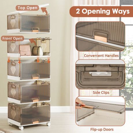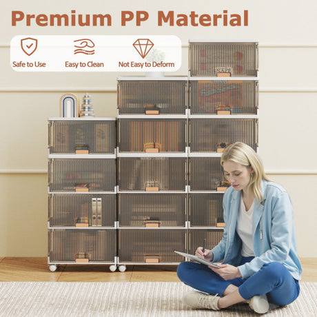 3/4/5/6-Cube Stackable Storage Bins with Detachable Wheels-5 Cube