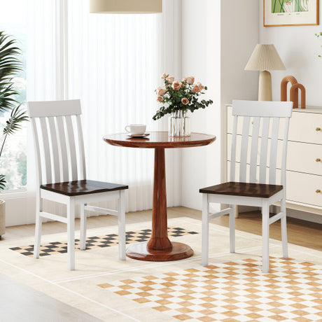 Set of 2 Kitchen Armless Dining Chairs with Slatted High Backrests-White