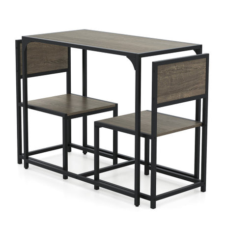 3 Pieces Dining Set Compact Table and 2 Chair with Metal Frame for Small Space-Oak