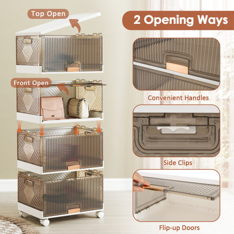 3/4/5/6-Cube Stackable Storage Bins with Detachable Wheels-4 Cube