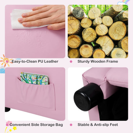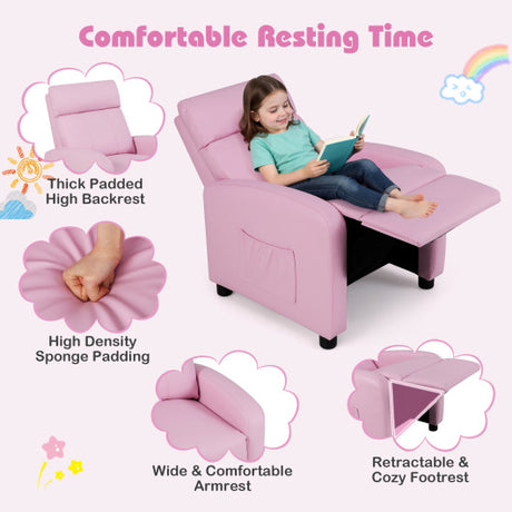 Ergonomic PU Leather Kids Recliner Lounge Sofa for 3-12 Age Group-Pink