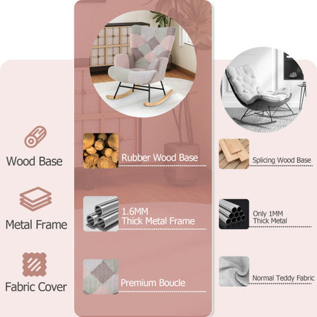 Nursery Rocking Chair with Ergonomic Armrests and High Backrest for Living Room
