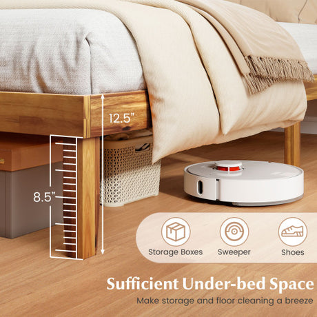 Twin/Full/Queen Size Bed Frame Mid-Century Acacia Wood Platform Bed with Headboard-Queen Size