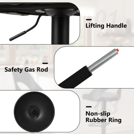 Bar Stools Set of 2 with Enlarged PU Leather Seat and Footrest-Black