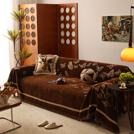Butterfly Jacquard Soft Couch Blankets Cover for Couch Reversible Modern Sofa Slipcover Throw Covers