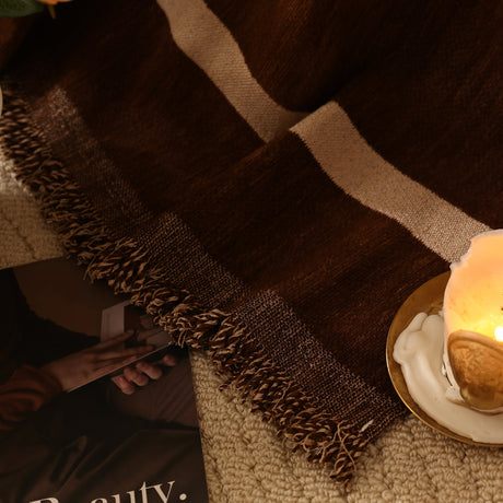 Boho Couch Throw Blanket with Textured Stripes, Sofa Cover for Living Room Decor