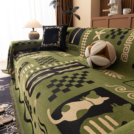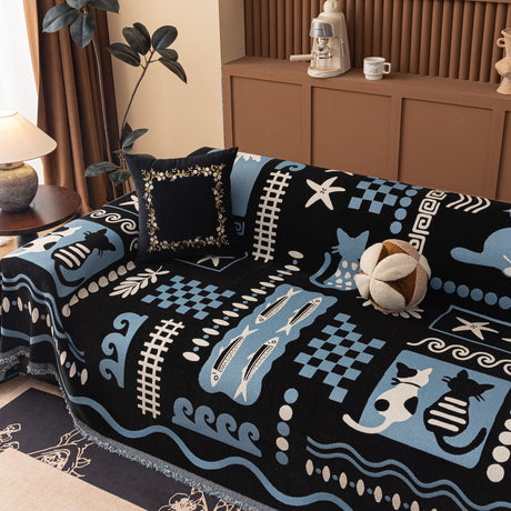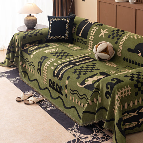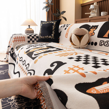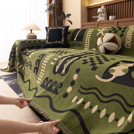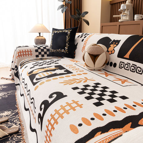 Boho Chic Woven Throw Blanket for Couch, Washable Couch Cover for Pets, Dogs, Cats