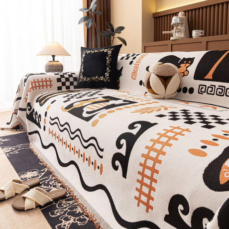 Boho Geometric Chenille Throw Sofa Cover Soft Textured Decorative Couch Blanket