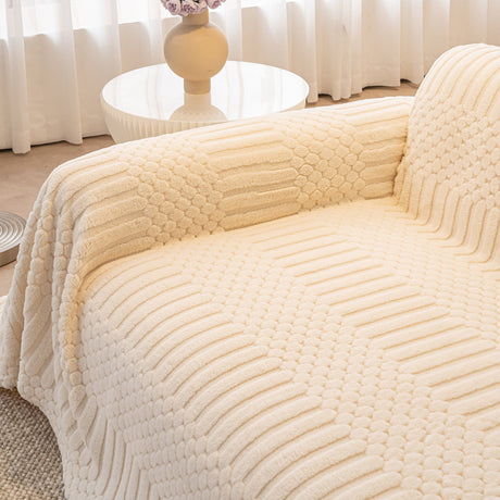 Bohemian Tufted Sofa Cover, Plush Fleece Throw Blanket with 3D Woven Aztec Stripes