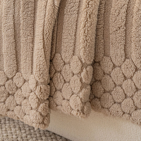 Bohemian Tufted Sofa Cover, Soft Sherpa Fleece Throw Blanket with 3D Aztec Geometric