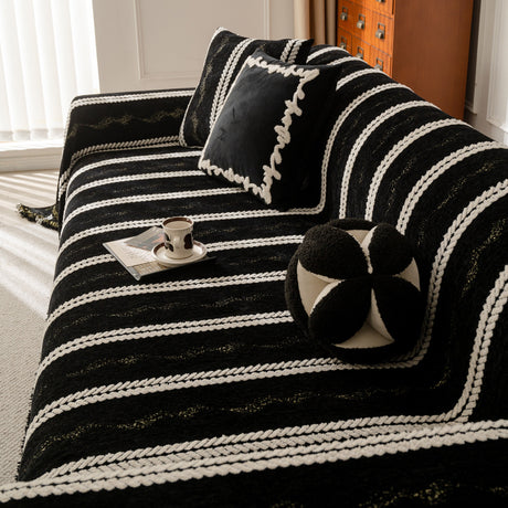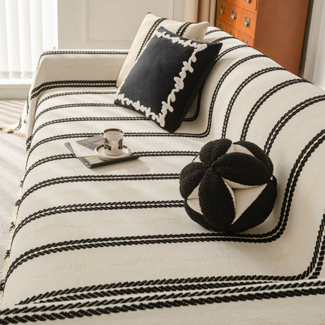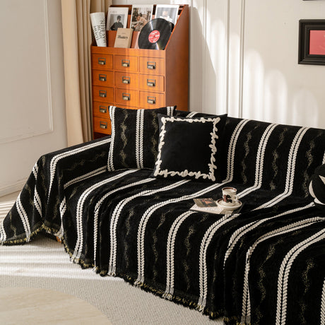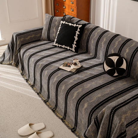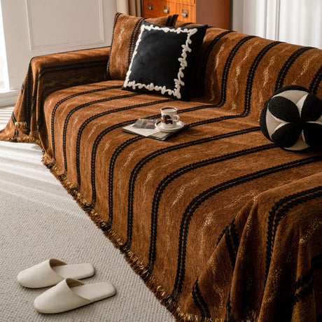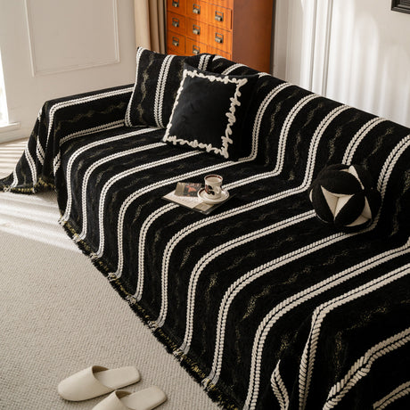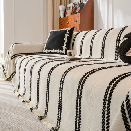 Boho Stripe Sectional Couch Cover Soft Chenille Sofa Slipcovers Blanket on The Sofa for Living Room