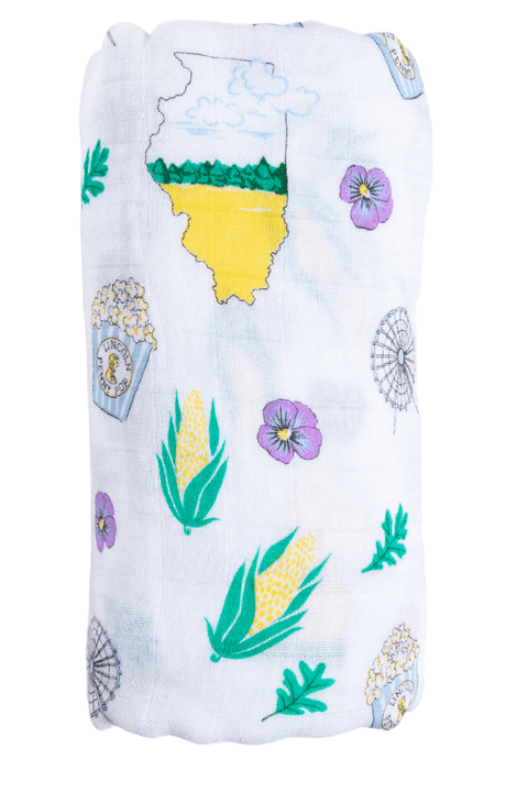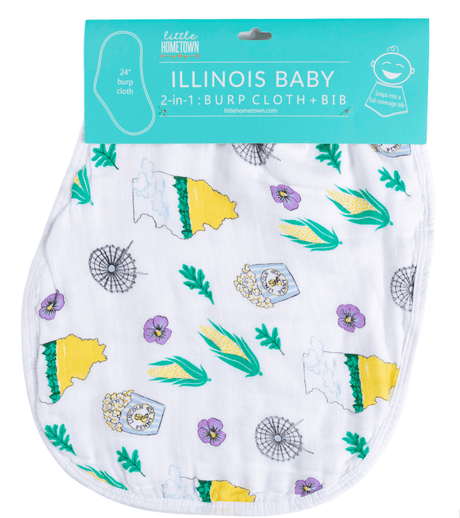 Gift Set: illinois Baby Muslin Swaddle Blanket and Burp Cloth/Bib Combo by Little Hometown
