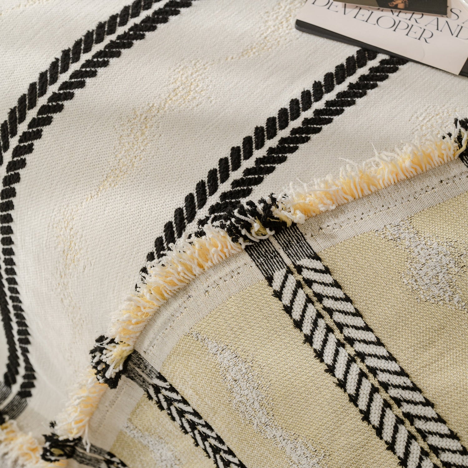Boho Couch Throw Blanket with Textured Stripes, Sofa Cover for Living Room Decor