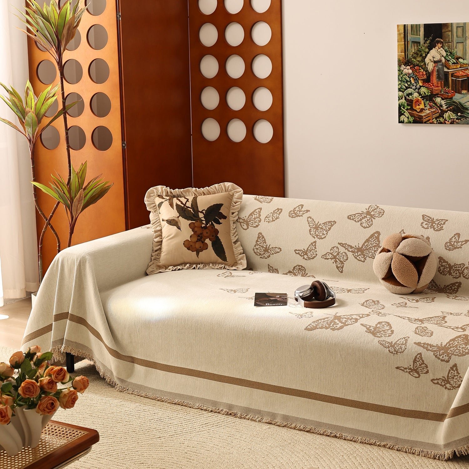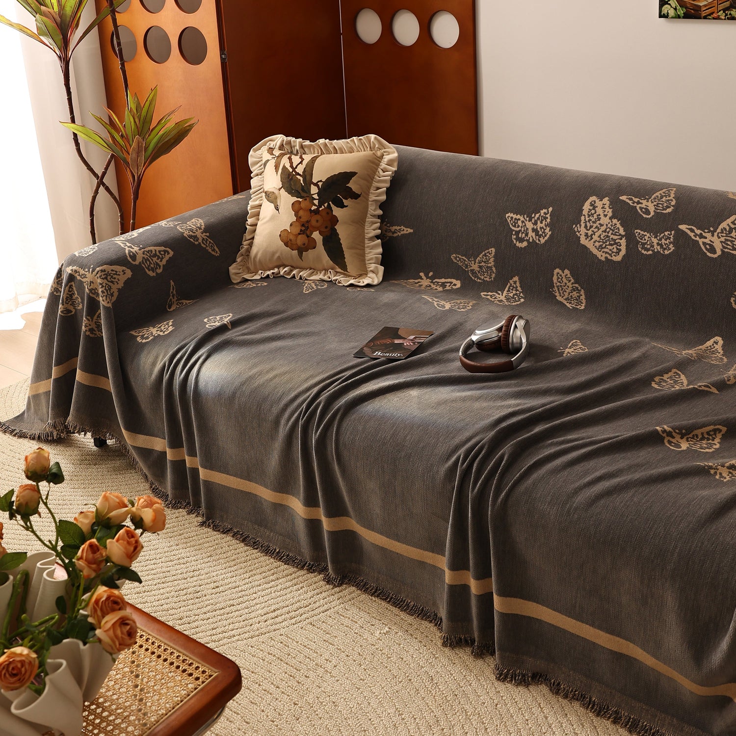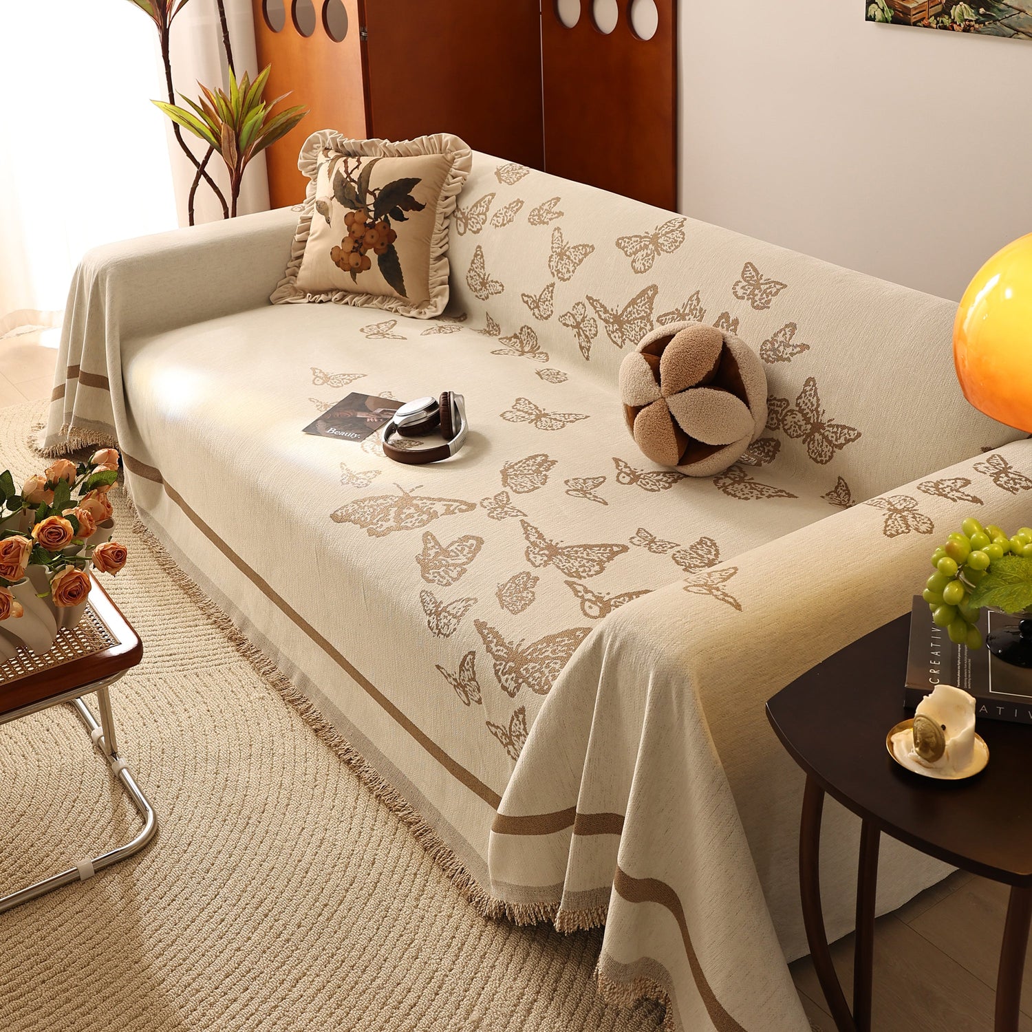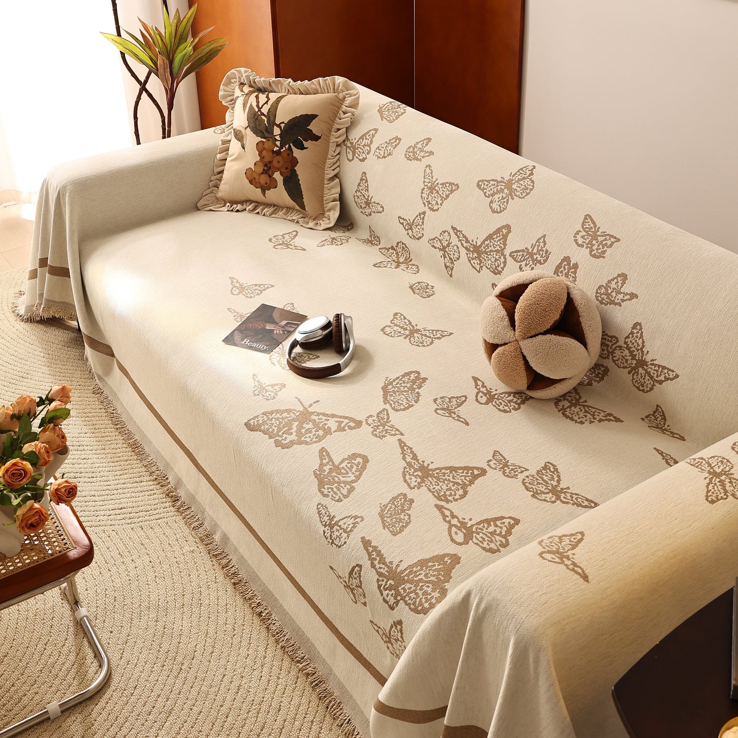 Butterfly Jacquard Soft Couch Blankets Cover for Couch Reversible Modern Sofa Slipcover Throw Covers - Beige / 180x130cm (70" x 51") is backordered and will ship as soon as it is back in stock.
