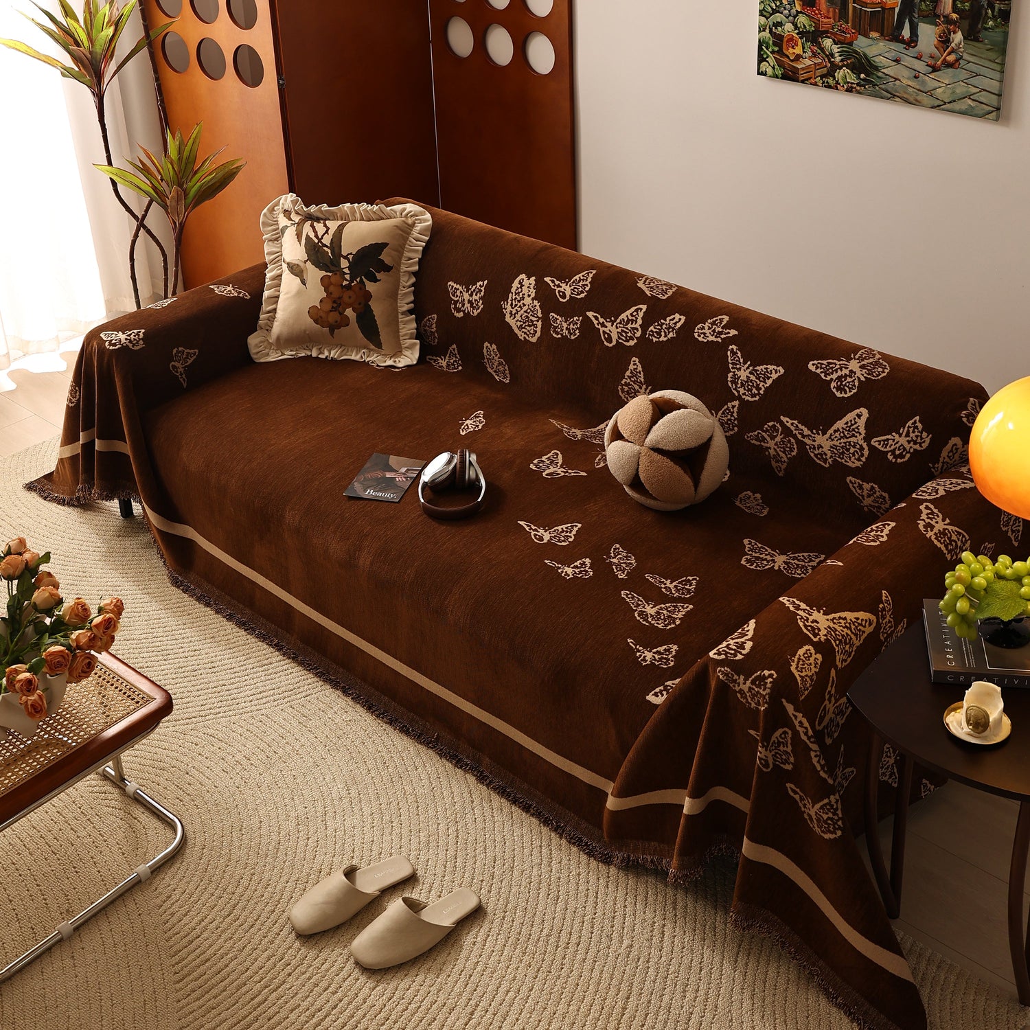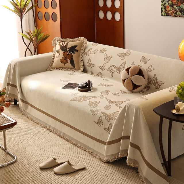 Bring a blend of nature and luxury to your home with the Butterfly Jacquard Soft Couch Blanket. The reversible chenille fabric showcases elegant butterfly motifs, making it both a stylish sofa protector and a cozy addition to your living space.