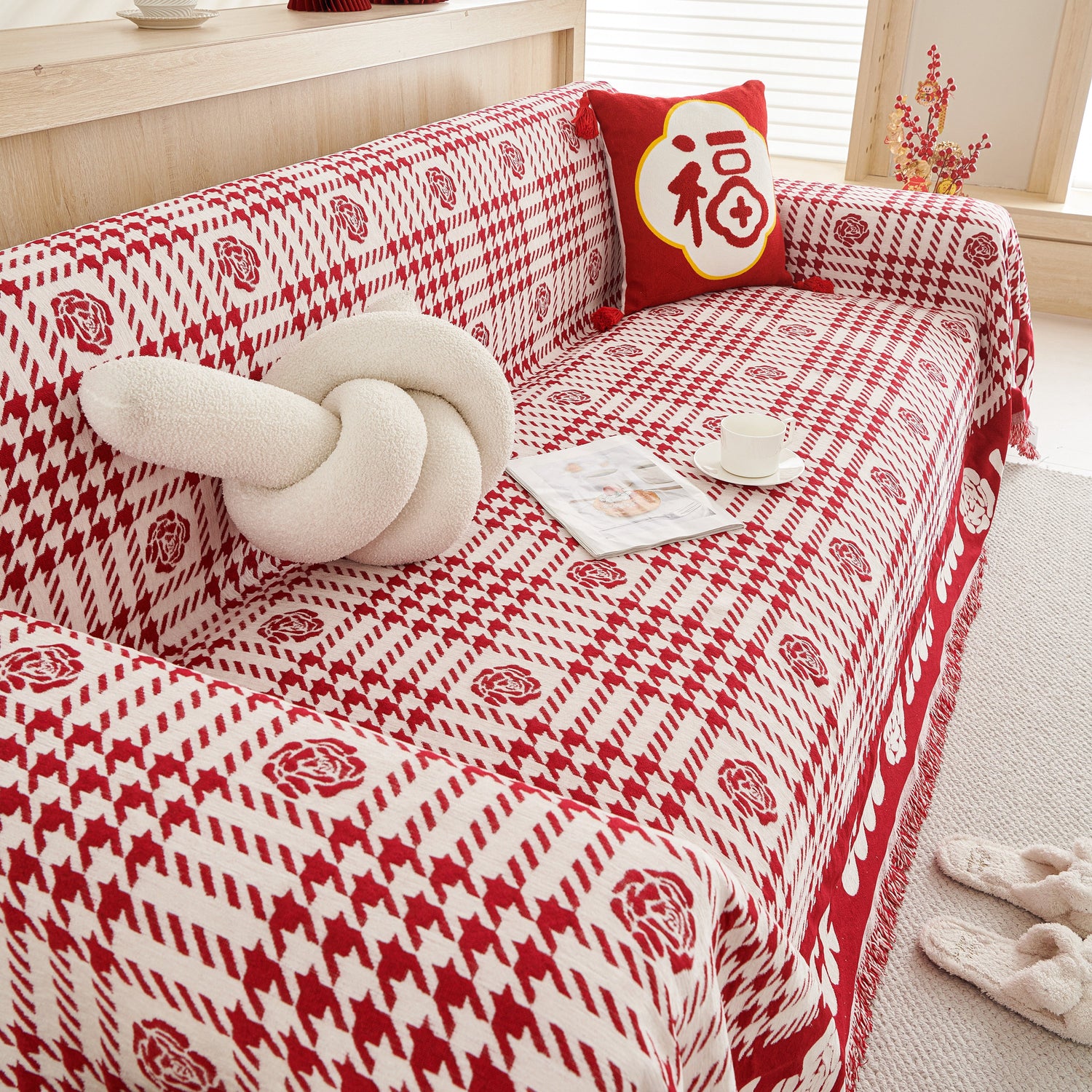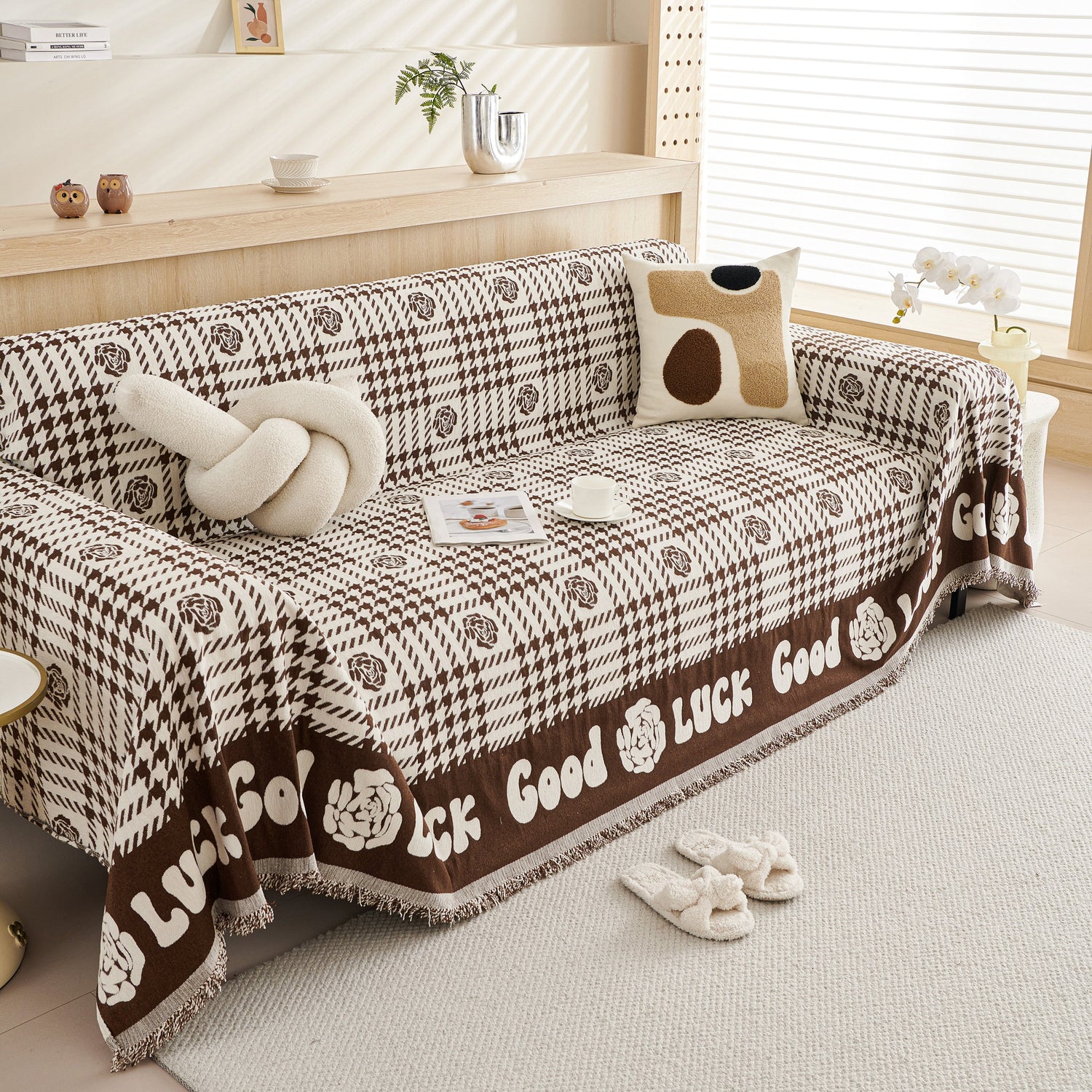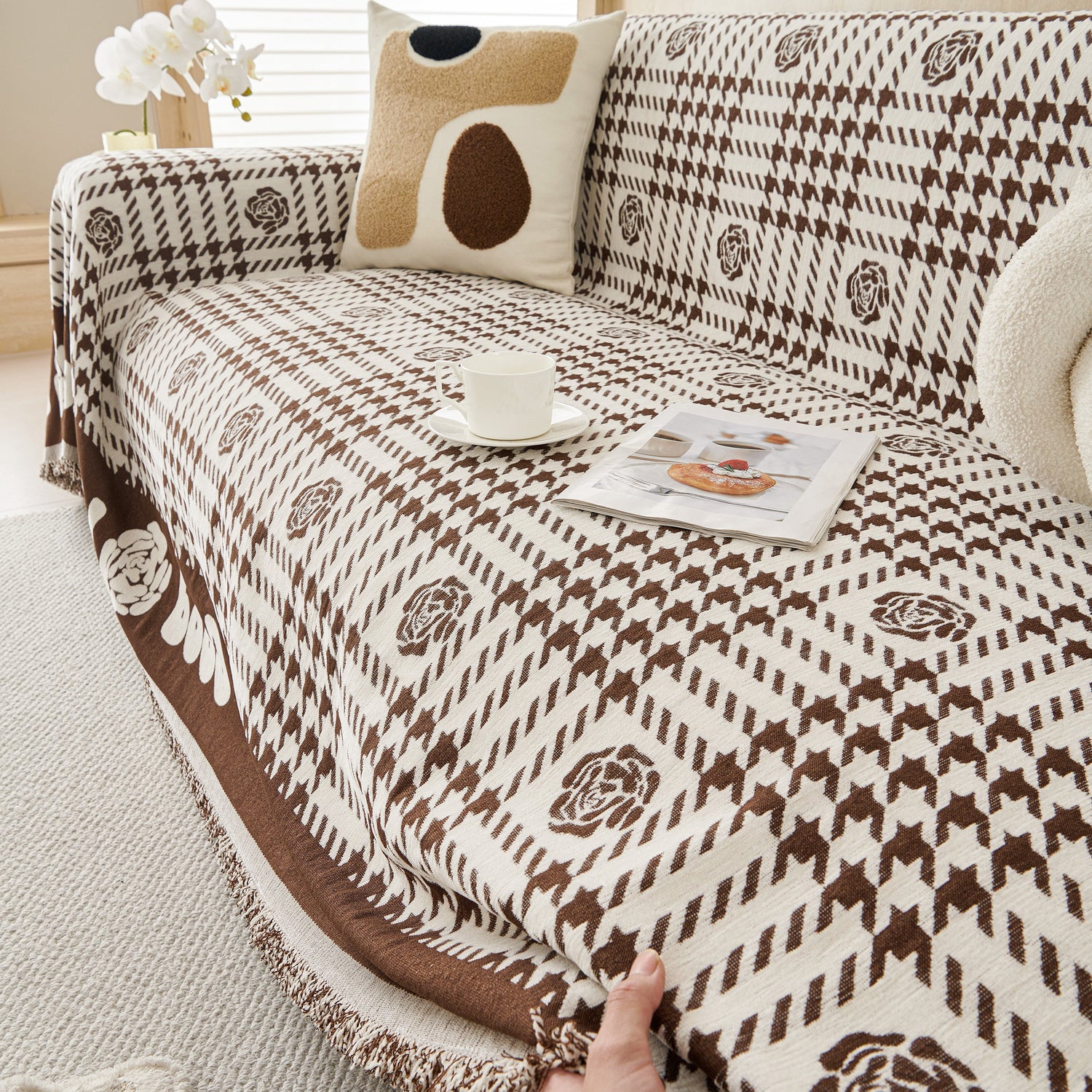 Chenille Houndstooth Sofa Throw Cover, Scratch Proof Cozy Throw Blankets for Couch