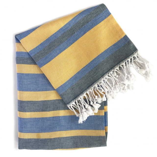 Denim Blue and Yellow Striped Turkish Towel Beach Blanket