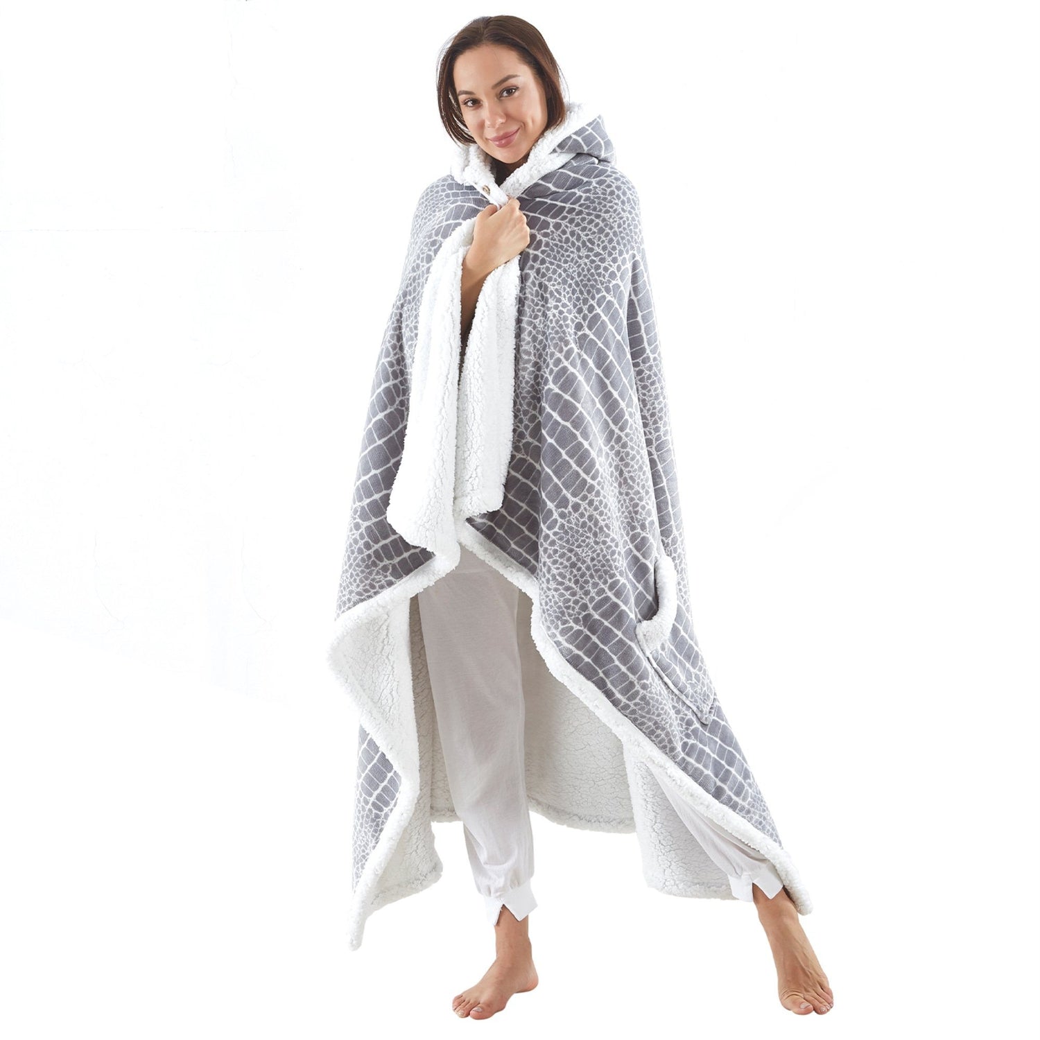 - THE PERFECT LOUNGEWEAR: Cover yourself with comfort as you relax around your home. This wearable hoodie blanket with 2 pockets and a button is designed to wear like a robe. You can wear it as your favorite sweatshirt.