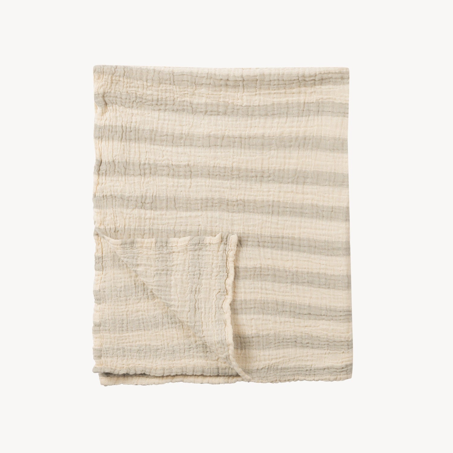 Almost as soft as the new little, this muslin's versatility evolves as the baby grows - from swaddle to cover, it is light-weight and compact for travel. A perfect gift for the babe and parents.