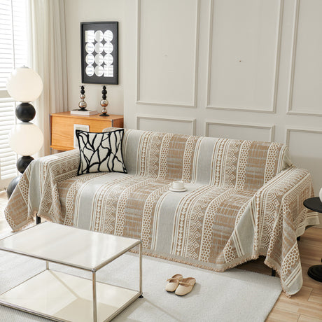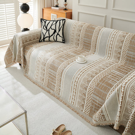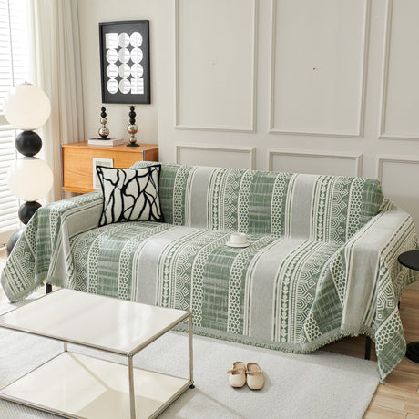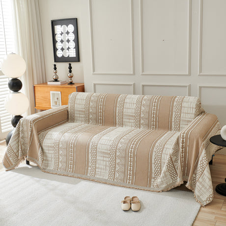 Chenille Jacquard Sofa Throw Cover with Tassel Soft Thick Couch Protector Blanket