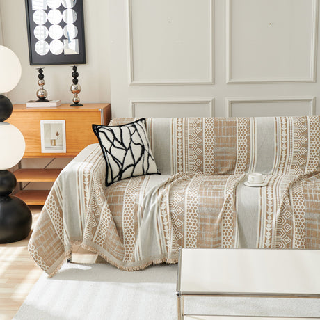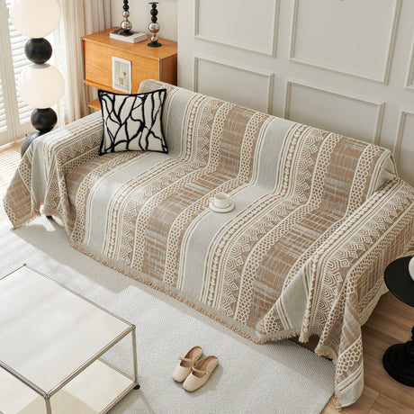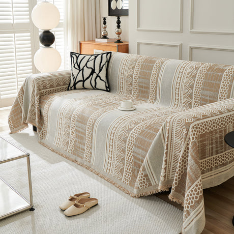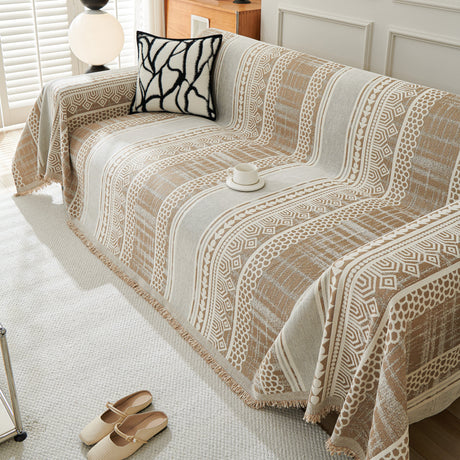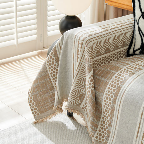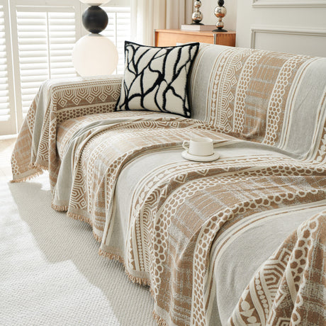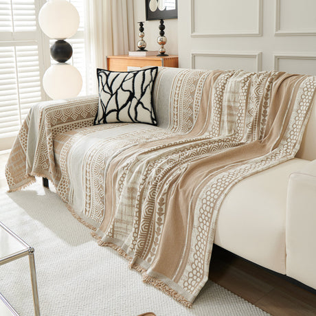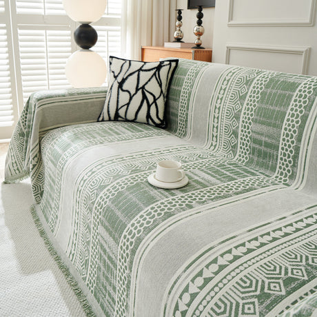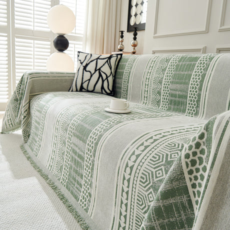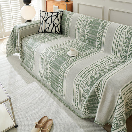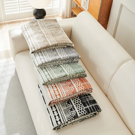 Chenille Geometric Sofa Throw Blanket, Boho Washable Furniture Throw Covers for Sofa