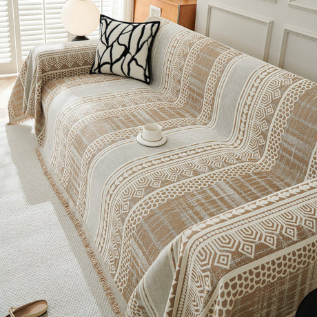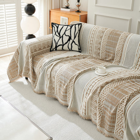 Chenille Sofa Cover Throw Blanket, Boho Geometric Scratch Proof Couch Protector