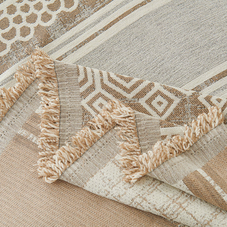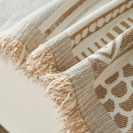 Cozy Couch Throw Blanket with Tassels, Jacquard Leaf Pattern Furniture Protector