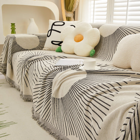 Geometric Radial Striped L-Shape Sofa Cover: Thick, Reversible Furniture Blanket for Kids and Pets