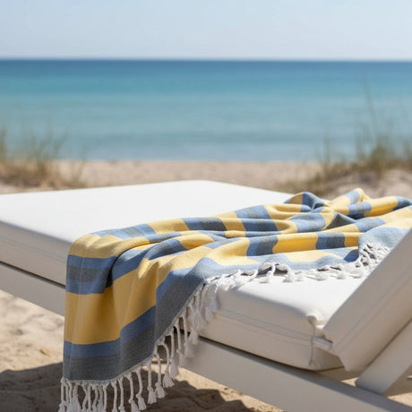 Denim Blue and Yellow Striped Turkish Towel Beach Blanket