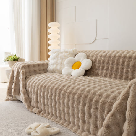 Faux Fur Smooth Plush Comfy Couch Covers, Soft Thicked Durable Blankets and Throws for Sofas