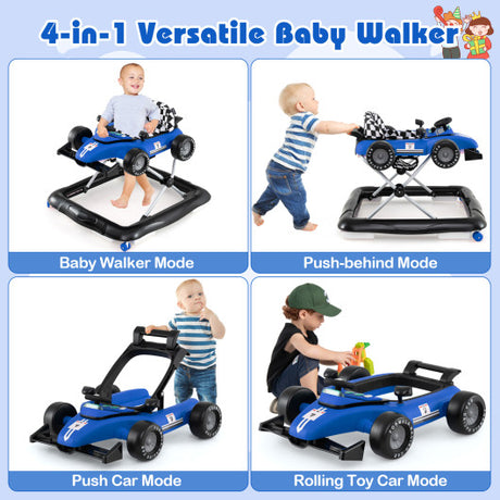 4-in-1 Baby Push Walker Activity Center Height Adjustable with Music Box-Blue