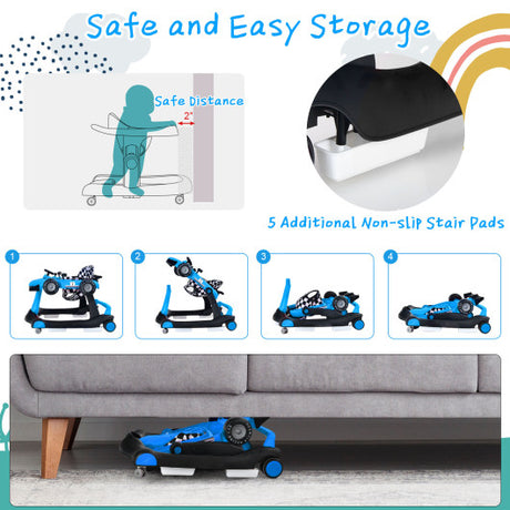 Adjustable Height Removable Folding Portable Baby Walker-Blue